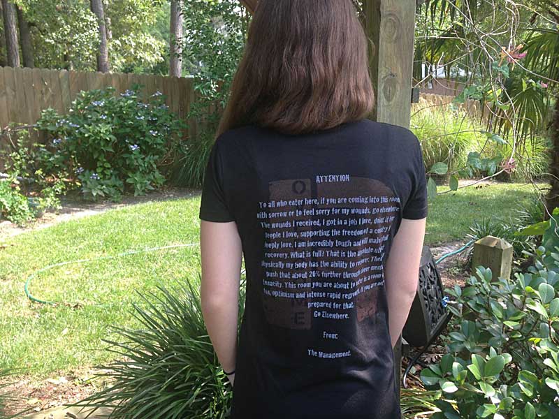 Feel the power of a “fashion statement” like no other in this high-quality two-sided Sign on the Door/Overcome black Tultex t-shirt sporting Jason’s “Overcome” mantra on the front and his famous, awe-inspiring Sign on the Door message on the back.
